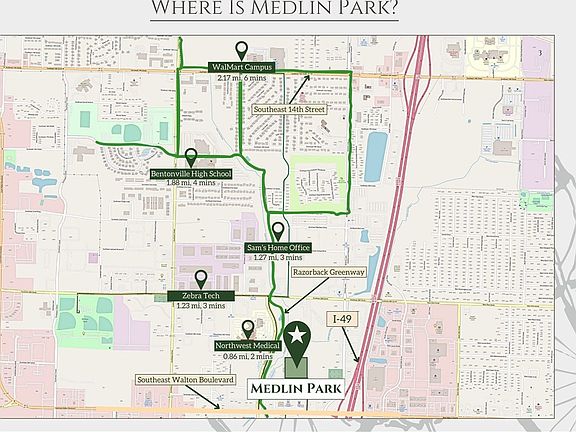 Medlin Park offers exceptional on-site amenities: a clubhouse with café area, refreshing pool, dog park, scenic fishing pond, and pickleball courts. Ideally located in southeast Bentonville, with easy access from I-49, residents will have direct access to the Greenway for walking & biking. Close to major employers like Northwest Medical and the new Walmart campus, as well as nearby attractions like Horsebarn Park, The Momentary, and downtown shopping and dining. Medlin Park combines convenience and lifestyle in a vibrant community!