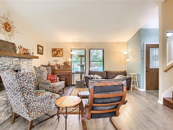 Updated Multi-level home all bedrooms up, 1/2 bath down garage converted by previous owners, exercising room 2 big storage rooms,Recently installed windows throughout & exterior siding replaced with Hardi-Plank, updated Kitchen, cabinets, counter-tops, pergo flooring, replaced deck over looks backyard, garden areas, surrounded by trees, low energy bills, big office area could be bedroom down. Living-room with nice big fireplace. close to metro bus line, grocery stores, restaurants. No HOA'S, nearby parks.