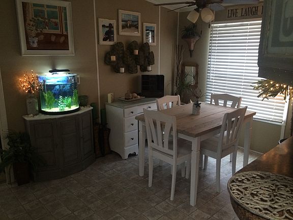 Charming 1998 Fleetwood 16 x 76 mobile home for sale in beautifully maintained community. This 3 bedroom 2 bathroom home has a layout unlike any other mobile home you will see! Walk into the large living room with great white wanescoating leading into the spacious kitchen with tons of counter space and tiled backsplash. Kitchen opens up to dining room with large window. Off of the dining room is a small enclosed laundry room with exit to back side of property. Large master bedroom with private master bathroom with french doors that open to twin vanities, large jacuzzi tub and separate shower. Also, connecting to bedroom and bathroom is a huge walk in closet with plenty of space. Separated from the master bedroom on the other side of the home is two spare bedrooms, one considerably larger than the other. In between is the full guest bathroom with updated bathtub/shower. This home has plenty of natural light provided by the 3 skylights located in both bathrooms and kitchen. Nice sized yard in great community with storage shed and driveway for two. Home will come with dishwasher, fridge, stove, heating, and cooling. New flooring and lighting throughout! Home can be moved, or stay. This is a must see!