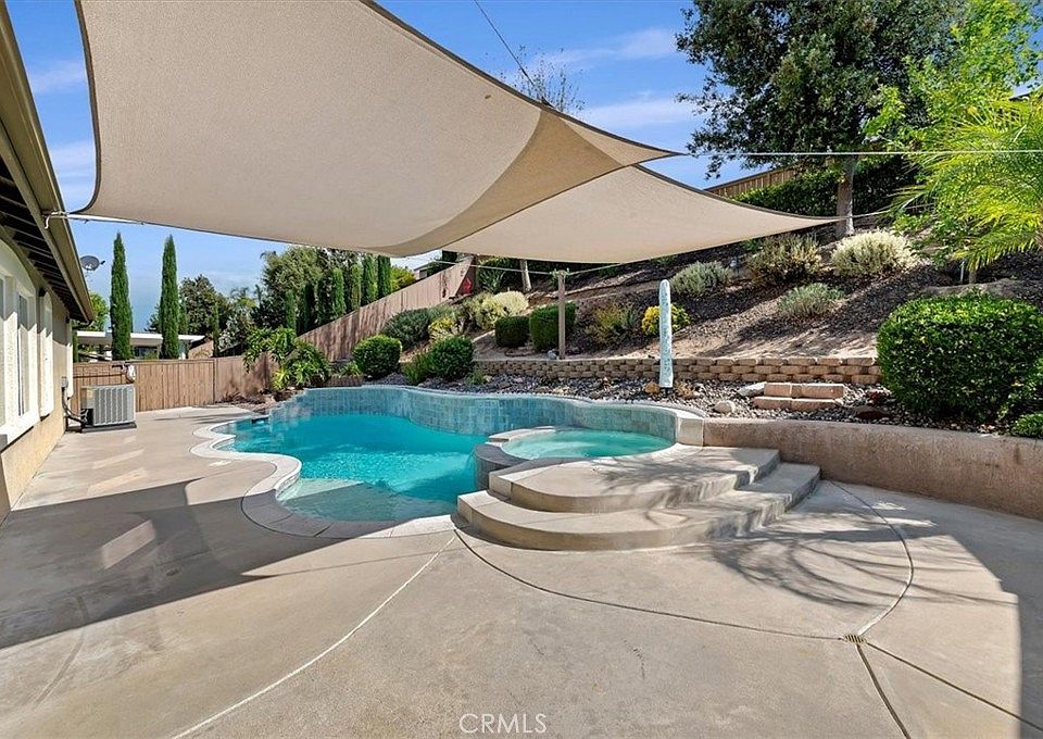 Discover your dream home in the desirable Crowne Hill community! This stunning single-story residence offers the perfect blend of comfort, style, and convenience. Features 4 bedrooms, 3 baths, and an office, encompassing 2,468 square feet of living space on a large lot for outdoor enjoyment. The open floor plan is filled with natural light, highlighting the laminate and tile flooring throughout, with cozy carpeting in the bedrooms. Offers shutters in many rooms. The heart of the home is the spacious kitchen, equipped with stainless steel appliances, Corian countertops, and a large island that seamlessly connects to the family room. From the family room, sliding doors lead to a fantastic backyard oasis, complete with a pool and spa, multiple sitting areas, and ample space for entertaining. Additional features include a 2-car garage with overhead racks and cabinets for ample storage. This home is conveniently located within walking distance to an excellent elementary school and just minutes from shopping, restaurants, and the spectacular Temecula Wine Country. Don't miss this turn-key opportunity to make this house your home! Schedule a viewing today and experience the beauty and comfort of Crowne Hill living.