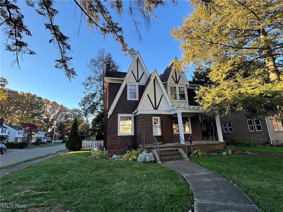 Nestled along a quaint brick-lined street, this classic Tudor home blends historic charm with spacious living. Rich hardwood floors flow through much of the interior, complementing the detailed natural woodwork that gives each room a warm, inviting feel. With 3–4 bedrooms, this home offers flexible options for a home office, guest space, or creative studio. A well-sized full bath and convenient half bath add practicality, while large rooms provide comfortable everyday living. Outdoor living is a highlight here—relax and enjoy the peaceful view from the second-story back porch. A fenced backyard offers privacy and room to play, and the detached two-car garage adds extra convenience. Situated close to the beauty and walkability of Vassar Park, this home is full of potential and ready for your personal touches. Offered as-is, it’s a great opportunity to create something special.