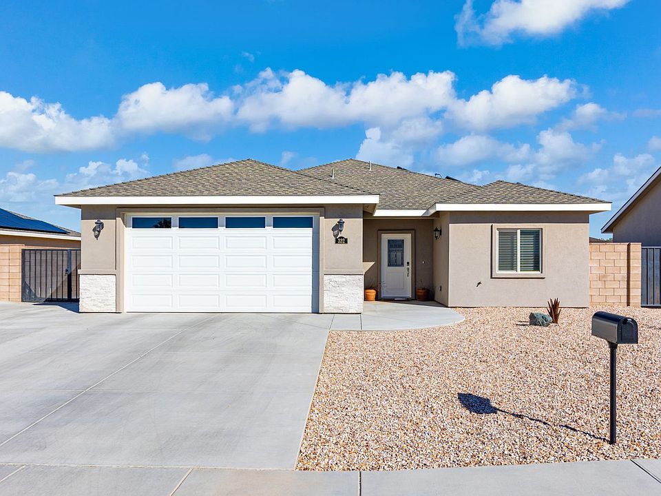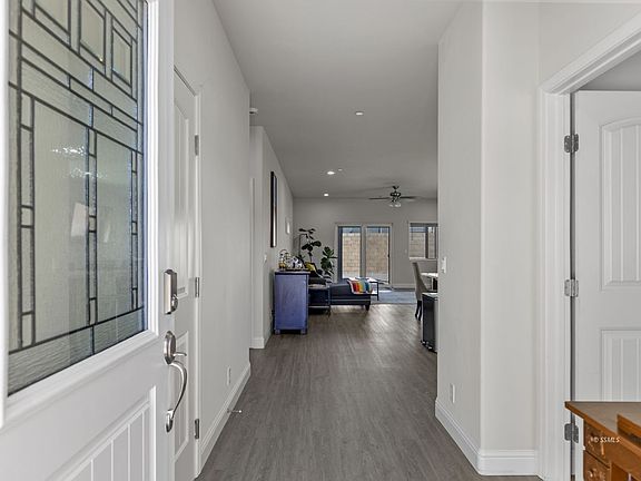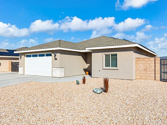 Beautiful home awaiting new owners! Nearly new 4 bed, 2 bath home w/ PAID SOLAR & AC! Generous great room w/ stunning kitchen that overlooks the dining & living space. The kitchen features quartz countertops, walk-in pantry & beautiful stainless steel appliances. Luxury vinyl plank flooring and 9ft ceilings can be appreciated throughout the home. The generous primary suite provides a great walk-in closet, lighted ceiling fan & luxurious ensuite bath w/ double sinks. The home also features nicely sized guest bedrooms, great indoor laundry w/ custom cabinetry & a 2-car insulated garage. Backyard w/ block wall surround, covered patio space & RV/boat parking & slab w/ wrought iron gates. This energy efficient '23 build comes equipped w/ owned 8lW solar system w/ Enphase microinverters, AC unit Seer 14, 2x6 construction w/ R-19 insulation in walls and R-38 in the ceilings.