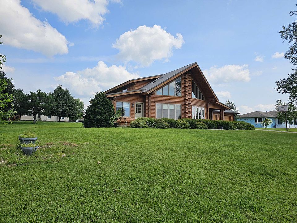 **Rustic Elegance Meets Modern Comfort!** Welcome to this one-owner log cabin-style home that blends cozy character with thoughtful upgrades, offering a lifestyle both relaxed and refined. The exterior of this home was recently stripped and resealed. New garage doors! Step inside to discover a spacious layout featuring vaulted ceilings, warm wood accents, and a wide open living and dining area ideal for entertaining. The main floor includes laundry with a half bath, a generous master bedroom with his-and-her closets, and a spa-like master bath complete with dual sinks and a jetted tub. The heart of the home is a gorgeous kitchen with granite countertops, flowing seamlessly into a sunny four-season room perfect for year-round enjoyment. A dedicated office space and bonus storage room just off the garage entry add convenience and flexibility. Upstairs, you'll find three additional bedrooms, a ¾ bathroom, and a loft-style sitting area overlooking the living space below. The open canvas basement provides endless possibilities for a game room, home theater, or additional living space. Outside features include a metal roof, sliding doors from the master bedroom that leads to a concrete patio, and a 2-stall attached garage. The home is equipped with a central vacuum system for added ease. This is more than a home—it’s a getaway nestled in comfort. Come experience its timeless charm and make it yours!
