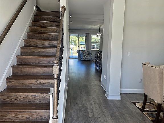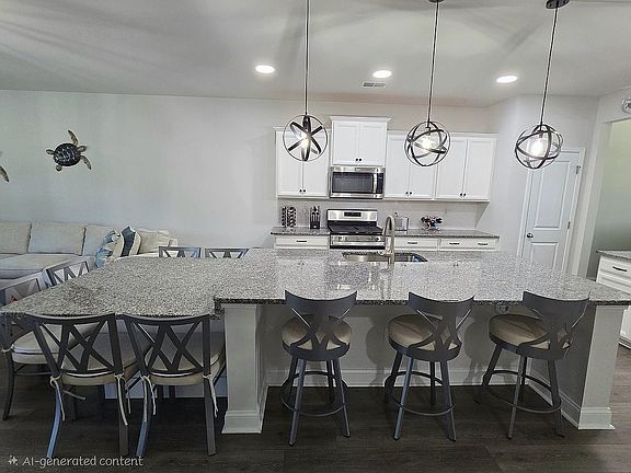 Home includes a master bedroom located on the main level along with a master bath with double vanity, shower and separate John. There is also a half bath on the main level. Home has a two car garage with new poxy flooring and screened in back porch. Driveway has been updated with pavers. Stone walkway has been added on side of the house leading to the backyard. Yard is completely fenced in with a pond view. Back patio and has been extended with pavers. Owners added a built-in stone fire pit with seating and a charcoal BBQ. Mechanical awning added to the back porch for extra shade. Center island has been extended for extra seating. Carpeting on the stairs replaced with hard wood. Upstairs you will find a very large loft area and separate En Suite with private bath and balcony facing the front of the house. The upper level also includes a laundry room, three additional bedrooms, and a full bath with double vanity. Lighting has been replaced with high hats throughout the house. Includes ADT security system with smart panel.