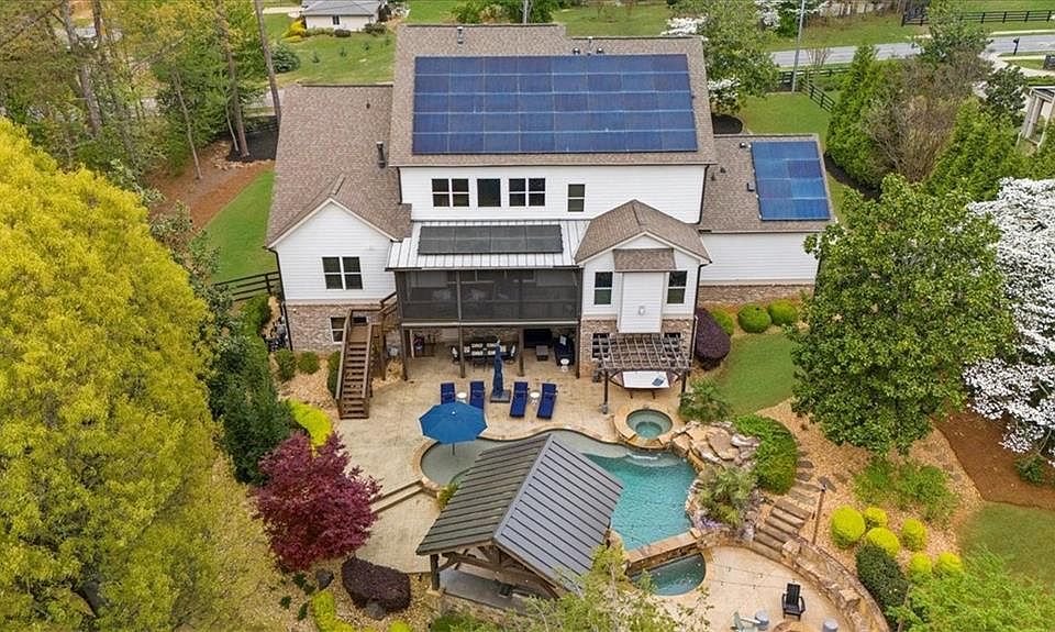 Welcome to the ultimate dream home where refined luxury, cutting-edge smart technology, and resort-caliber outdoor living come together on over an acre of exquisitely landscaped grounds. This remarkable residence offers an unparalleled lifestyle at a price point unmatched in Roswell, Georgia. The expansive main-level primary suite is a sanctuary unto itself—grand in scale and designed for ultimate comfort. The open-concept floor plan flows effortlessly, perfect for elegant entertaining or simply impressing guests with seamless indoor-outdoor connectivity. Step outside, and you're transported into a private resort: a vanishing-edge pool, spa, tranquil water features, LED lighting, and a 20-ton boulder waterfall that feels plucked from a five-star retreat. Your outdoor oasis continues with a full summer kitchen, firepit, café lighting, a children’s play set with sandpit, and a luxurious swim-up bar—because walking to your cocktail is optional. Whether you're hosting an alfresco dinner or enjoying quiet mornings, this backyard redefines "staycation." Inside, curated designer details abound—board-and-batten and shiplap accents, custom lighting, plantation shutters, and warm wood finishes. The chef’s kitchen is both functional and fashionable, featuring professional-grade appliances, a massive island, and a walk-in pantry that’s as practical as it is impressive. Two gas fireplaces add ambiance on the main level, while upstairs offers three generously sized bedrooms and a versatile bonus space—ideal for a theater, home office, playroom, or creative studio. Sophistication meets innovation with over $600,000 in upgrades, including: • A 20KW solar panel system with battery storage and energy buy-back • A 24KW Generac generator for full-home backup • Alexa voice control, integrated iPad automation, whole-home audio, and outdoor surround sound • Enterprise-grade networking with 5-gig fiber internet • Smart water monitoring, full home water filtration, and security camera system • Epoxy-finished garage floors, built-in storage, EV charging station, and RV hookup The home also includes 12,000 watts of outdoor heaters, motorized screens, ceiling fans, and premium underdecking—ensuring year-round comfort in your outdoor living areas. And with a 400-amp electrical upgrade and architectural plans in hand, the unfinished terrace level offers endless potential for a custom theater, gym, wine cellar, or personal retreat. Freshly painted inside and out and located in the top-rated Sweet Apple Elementary district, this home offers both prestige and convenience—just minutes from Downtown Roswell, Crabapple, Milton, Alpharetta, and Avalon. Located mere steps from the forthcoming Edwin and Nelda Spruill Park—a 50-acre natural haven—you’ll enjoy instant access to trails, green space, and morning coffee strolls. With no HOA, your lifestyle remains your own: park your RV, fly your flag, or build your dream garden with no restrictions. As an added distinction, this home was featured in A Jenkins Family Christmas—its charm and character already recognized on the silver screen. Style. Substance. Innovation. There is simply nothing else like it at this price in Roswell. Welcome home!