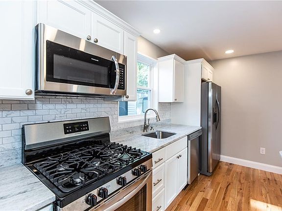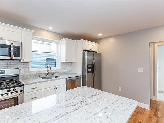 This is a top to bottom interior renovation you don't want to miss! An open layout welcomes you into the main-level living space and features a new kitchen w/granite, stainless appliances & center-island, a formal dining area, hardwood floors, laundry room, and a pretty stone fireplace. The new bathroom feels luxurious with beautiful stone and tile finishes, while new carpeting and a cool color palette combines to create three inviting bedrooms on the second-floor. Important improvements include new plumbing, electrical, & windows! A five-year-old roof, deck overlooking the large/fenced backyard, and full basement for storage round of the features of this move-in ready property.