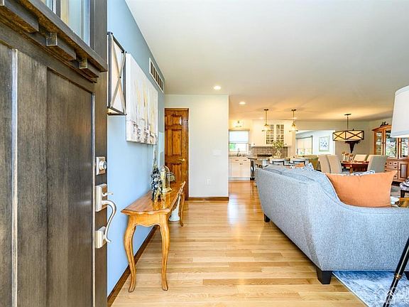 Look no further! Beautiful 3 Bed 2 Bath Ranch with Master Suite, 1 Car Garage, Basement & stunning Resort-like Backyard is sure to impress! Meticulously maintained located in a great neighborhood, this home has countless modern upgrades throughout. Completely move-in-ready & just waiting for you! Step in, to find a spacious open layout with solid Bella Wood floors that shine, custom window treatments & plenty of natural light. Gourmet open Eat-in Kitchen offers SS Studio LG Appliances, Omega soft close cabinetry, handcrafted subway tile, premium Quartz countertops & recessed lighting. Entertain in the Formal Living rm and Dining rm or relax in the spacious Family rm in front of the Heatilator WB Fireplace, adorned with stone masonry wall & soaring skylights. Down the hall you will find the main bath + 3 generous Bedrooms with original HW floors and carpeting. The Master Suite boasts its own fully tiled ensuite bath with frameless shower door & Robern medicine cabinet. You will find plenty of storage in the Mudroom with an extra-large Pantry and closet. Solid wood interior doors + moldings add to the package. Feel secure with the ADT Alarm system and ProVia Signet Entry door. There's more! The incredible Backyard is designed for entertaining! Gather at the Pavilion with recessed lighting, stone Bar with granite countertop, 20' x 20' composite Deck, 40 ft Paver Patio with sitting wall and LED lights. Unwind with nature listening to the cascading waterfall. Have fun in the sun splashing in the Above-Ground Pool and lounge on the separate deck. The list goes on! Vinyl shed, Sunbrella Canvas Awnings & Patio Swing. Completely fenced-in with an abundance of privacy, beautiful mature landscaping. Sodded lawn + sprinkler system for easy maintenance. Do not wait! This is an absolute MUST SEE!