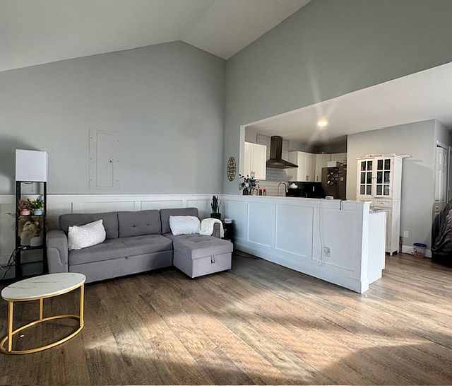 Stainless appliancesHardwood floorsStunning cathedral ceiling