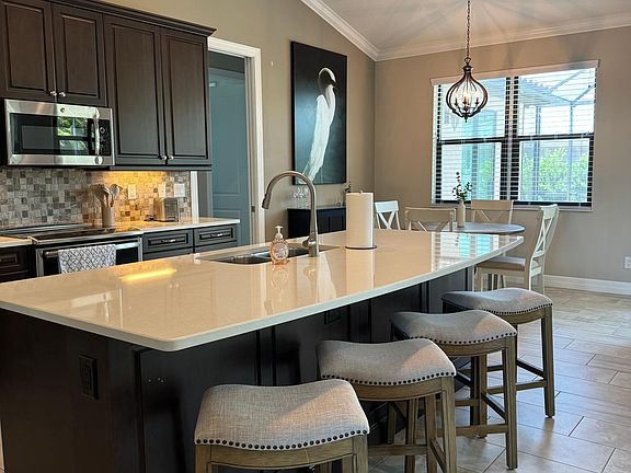 Built in 2017, this open floor plan home boasts a three car garage, laundry room, beautiful and modern eat in kitchen, dinning room, and large great room style living room that opens via stacking sliders to the screened in and heated pool and lanai; making this home perfect for entertaining.