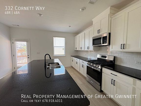 You won't want to miss this beautiful new townhome just minutes away from Downtown Lawrenceville's vibrant dining, shopping and entertainment venues! Walking in, you are greeted by a bright and open floor plan, with the living and dining area seamlessly blended. The living room features a warming glass fireplace and large windows. Going into the kitchen, a gas stove is featured along with a spacious and convenient island countertop. Upstairs are 3 bedrooms and 2 bathrooms. The master is quite large and holds a beautiful bathroom with a glass tile shower. The basement is your garage entry, as well as an extra private en suite with its own bathroom.