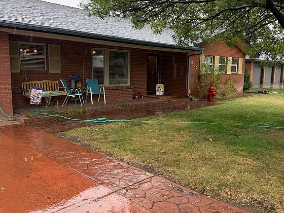 Stunning 4-Bedroom, 3-Bath with Guest House and Extra Room. Owner's suite features twin closets, double vanity and spacious shower. Hall bath also offers double vanity and shower-over-tub. Kitchen with an electric range, stainless steel drop-down vent hood, double oven, and elegant Corian countertops, Travetine back splash, pantry and ceramic floor and bay window, opens into a large living room with a corner fireplace and wood flooring. The utility room functional with ample cabinets and countertop space, but also includes a wheelchair-accessible bathroom with a floor-level cast marble roll-in shower, corner seat, secure grab bars and sink. Giant extra room offers endless possibilities. Fully equipped guest house designed as an efficiency apartment. Extra driveway and storage building.