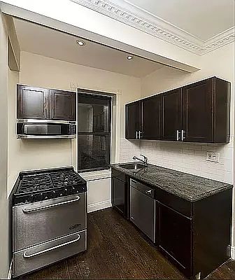 This apartment is renovated featuring: Ebony hardwood floors, recessed lighting, granite countertops, stainless steel appliances, cherry wood cabinets, crown and baseboard moldings, and marble bathrooms.