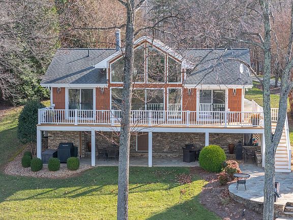 Nestled on the serene shores of Smith Mountain Lake, this exceptional property offers a perfect blend of luxury, comfort, and outdoor living. With 150 feet of prime shoreline, enjoy breathtaking views and a prime dock for boating and water activities, including 13 feet of deep water off the dock. Step inside and be captivated by the exquisite details throughout. The home features rich Brazilian Cherry hardwood floors, custom cherry cabinets, and beautiful granite countertops that elevate the kitchen and living spaces. The ceramic tile bathrooms and kitchen provide durability and timeless appeal. Crafted with meticulous attention to detail, the natural stacked rock fireplaces--both inside and out--add warmth and charm to the home, complemented by custom-laid flagstone patios by renowned craftsman Stephen Edmondson. Outdoors, you'll appreciate the composite decking and railing on the deck and dock, perfect for enjoying the stunning lake views. An outdoor shower provides a refreshing escape after a day on the water. The home is built to last with Nichiha concrete siding and boasts an efficient irrigation system to keep the landscape lush. Whether you're relaxing by the water, hosting guests, or enjoying peaceful solitude, this property offers an unparalleled lakefront experience. Come see for yourself how this one-of-a-kind Smith Mountain Lake property can be your dream retreat!
