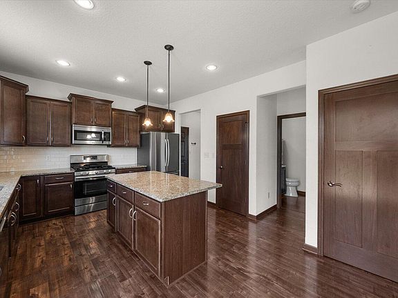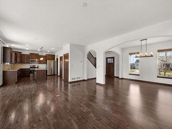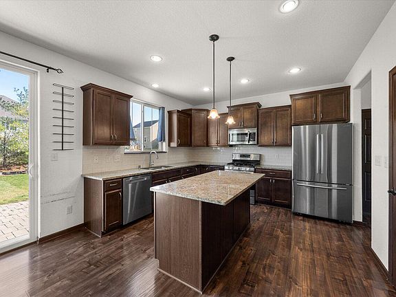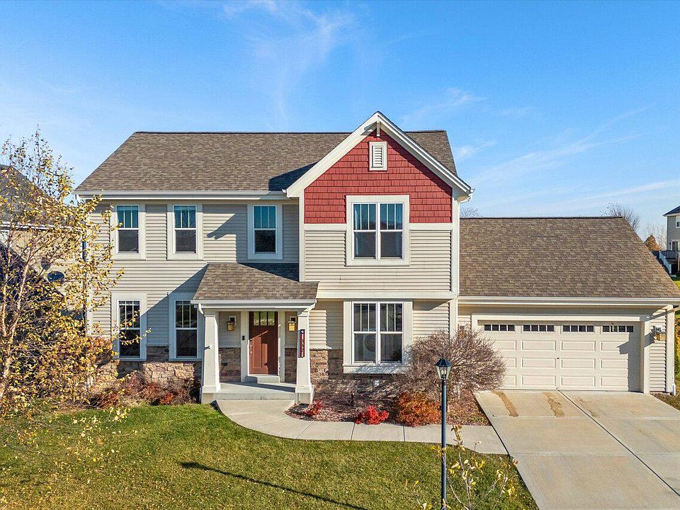 This newer colonial in Hidden Hills offers 3 great levels of living space! A main level open floor plan is flooded with natural light, has high ceilings, solid doors, hardwood floors, arched doorways, rounded drywall corners, custom blinds, and a terrific flex space at the front of the home. The kitchen includes an island, gas stove, pantry, & granite counters. Main floor laundry and back hall transition area perfect for the busiest families. Upstairs are 4 spacious bedrooms. The finished LL includes an entertainment room (projection TV included), fitness/play room, and a 3rd full bath. A sweet backyard with a paver patio and a 2.5 car attached garage round out the home! Terrific location with a neighborhood park and close to I43 and all amenities.