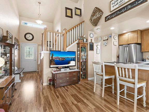This adorable home is a must see! It is perfect for those who are just starting out or looking to downsize. The vaulted ceilings and high windows open up the floor plan. The homeowners purchased this house in 2016 and have since put a lot of attention into this home with upgrades such as, new flooring throughout, new appliances in the kitchen including a sink and counter tops. The washer/dryer combo is approx 2 months old. New water heater installed in 2016. The shelving in the living room comes from a 100 yr old barn and can stay. Sellers also carved out extra storage under the stairs as well as under the kitchen counter. The coat closet in the kitchen was also converted into a pantry. Enjoy the back patio with your own personal hot tub! The patio also is a host to many strawberry plants, herb/plant/flower containers and a fig tree! Don't hesitate to call for a showing today! Please note, bird bath does not come with home. Seller will provide a 1-year home warranty for the property.