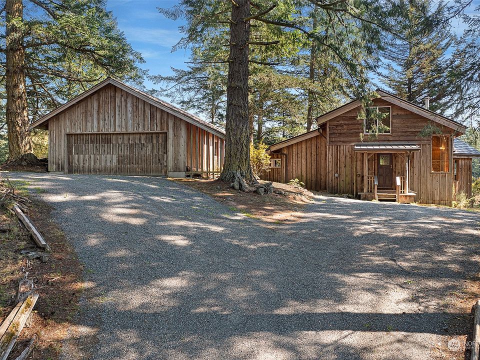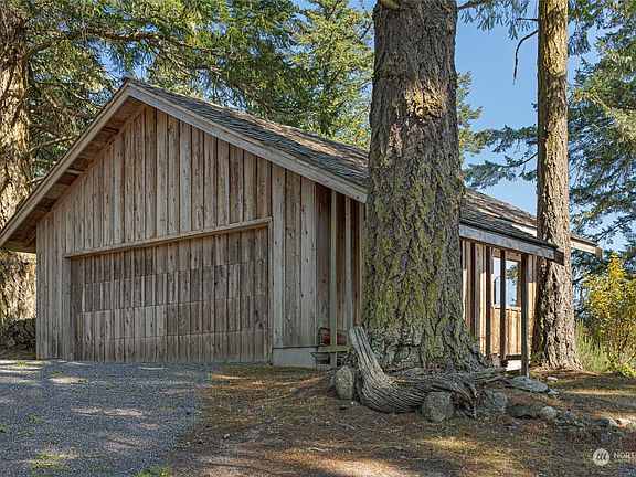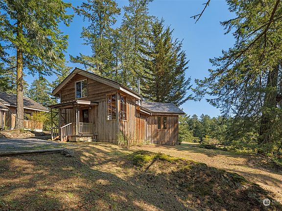 Nestled in a woodland setting, this charming cabin offers a storybook escape, with its cozy, rustic charm & idyllic surroundings. It's the perfect retreat for those seeking tranquility & a touch of magic. The cabin features a warm, inviting interior with a crackling wood stove, handcrafted wooden details, vaulted ceilings, a lovely deck & picturesque territorial views. Upstairs you'll find a pleasing bedroom with a cozy deck and a bonus room. There is plenty to explore on this private 16.9 acres of property, which includes a 2-car garage, stone pathways & patio, small pond & orchard. Whether you're dreaming of a peaceful San Juan Island getaway or a fairy-tale home, this property promises a simple haven. Property is being sold AS IS.
