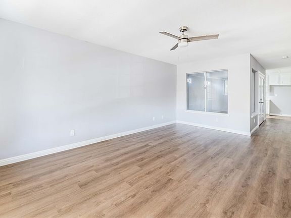 Single family home for the price of a condo! No HOA and great tax rate! This lovely single story home offers 2 very large bedrooms with a bonus room off of the living area that can be used as an office, den or an additional bedroom. New laminate flooring throughout, fresh modern paint, ceiling fans, and an open concept kitchen. This home also features a great front patio as well as large front yard with an addtional outdoor courtyard area in the back adjacent to your attached garage. Great layout features a large family room and dining area, as well as an option for barstools at your kitchen counter.