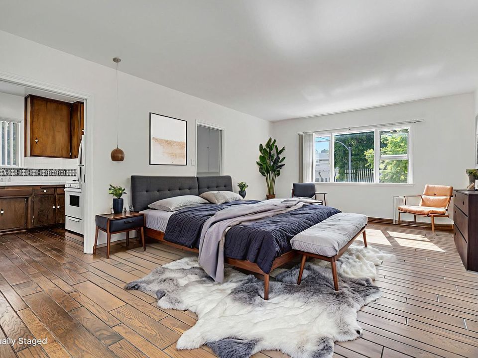 La Peer Drive is quiet and the neighborhood is safe. The property includes shared laundry on-site with kitchen appliances included. Unit is freshly painted. Beautiful, real hardwood floors throughout.