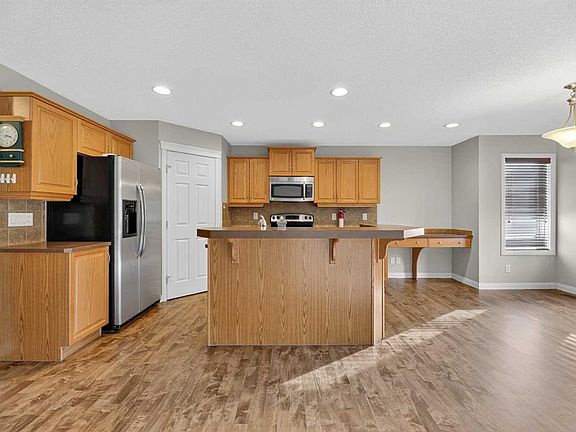 Ideally situated in the vibrant, family-friendly community of Sagewood, this well-maintained home offers the perfect blend of comfort, space, and style. From the moment you arrive, the inviting curb appeal sets the stage for what awaits inside. Step into a spacious foyer with direct access to a bright home office/flex room, perfect for remote work or hobbies. The open-concept layout across the rear of the home is designed for both everyday living and entertaining. The kitchen features a large island and corner pantry—ideal for the family chef—while the adjoining dining area easily accommodates everything from quiet dinners to larger gatherings. A rear door leads to a sunny two-level south deck and lower patio, extending your living space outdoors. The living room is filled with natural light from expansive windows and anchored by a cozy gas fireplace, creating a warm and welcoming atmosphere. Everyday convenience is built in with a main-floor laundry and mudroom. Upstairs, a versatile loft provides the perfect spot for a playroom, home office, or lounge. Three well-appointed bedrooms complete the upper level, including a spacious primary suite with a walk-in closet, soaker tub, and separate shower. The lower level offers plenty of potential for a future development tailored to your family’s needs. The front exterior of the home was re-done after the 2014 hailstorm, and with an additional 2” Styrofoam insulation in the exterior walls, as well as a new high efficiency furnace installed in 2024, this makes for a very energy efficient home. All of this is located on a quiet street in the heart of Sagewood, just a short walk to schools, canals, walking/biking paths, soccer fields, and outdoor skating rinks. Don’t miss the chance to make this exceptional home yours—book your private showing today!