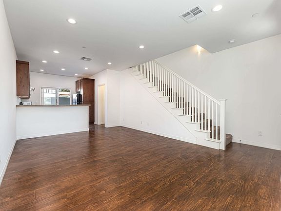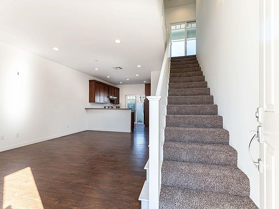 Enter from the extra-large front door or from the private 2-car garage. Enjoy the open-plan where a modern kitchen w/ breakfast bar opens to the rest of the living area with natural light from the large front window and sliding glass patio door. Includes coat closet, half-bath, and an extra closet in the garage. Kitchen comes with steel dishwasher, gas stove, oven-hood, garbage disposal, and refrigerator included.
