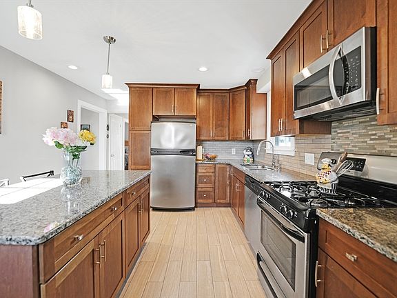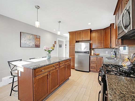 Two bedroom ranch located in the north end neighborhood of NB. Tan vinyl siding with accents of faux stone & scalloped detail. The kitchen has ceiling high maple cabinets. Large island, granite countertops, tiled backsplash & stainless steel appliances. The fenced-in backyard has a 26' deck with a pergola. Mudroom addition. The deck, siding, roof, windows, kitchen & custom built shed were completed in 2014. Central a/c was installed in 2017. High efficiency gas boiler with hot water.