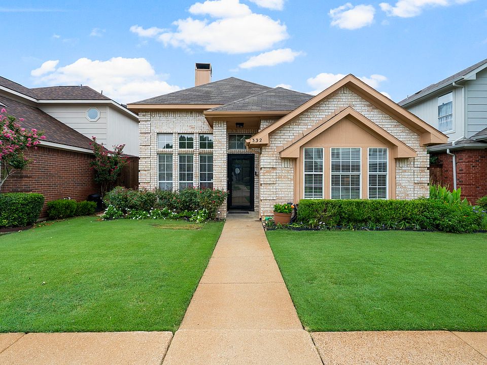 Updated home with 3 bedrooms and 2.5 baths, new roof in 2023. Primary on the first floor. Large secondary bedroom upstairs, loft and more. Home offers highway quick access to 121, 35, George Bush and minutes to DFW airport. Highly sought after and top rated school district. See thru fireplace, Updated paint colors,Primary bath with stand alone tub, glass enclosed shower, walk in closet, quartz counters. Kitchen with SS sink, white cabinetry, quartz countertops, light and bright. beautiful floral landscaping, grass yard is so pristine that you will think it is a golf green. Pride in ownership shows here. Move right in. Everything has been updated for you!