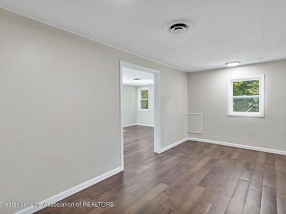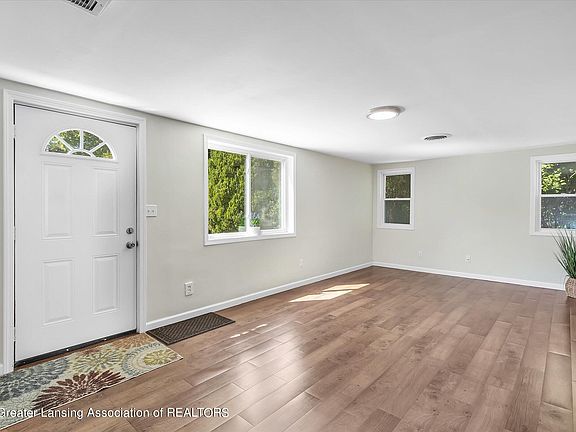 Welcome home to this completely updated 3 bedroom, 2 bath ranch home located in highly desirable Delta township with an inground swimming pool! Almost everything has been updated in this home, and is completely move-in ready. The living room is spacious with large windows, allowing for lots of natural light and all new flooring throughout. There is a formal dining room that is attached to the kitchen, which features all new cabinets, new countertops, new sink, and stainless refrigerator, microwave and dishwasher. Three bedrooms are on the main level, one of them being a primary bedroom suite with its own walk-in closet, fireplace and attached ensuite bath with new shower, vanity and toilet! There is also a convenient slider access to the beautiful backyard with an inground swimming pool, sheds and on almost 1/2 acre of property! Freshly painted throughout, there is also a main floor laundry room and a second all new full bath! A large garage is also attached that you could fit two cars into. Additional updates include a brand new water heater, new roof, new windows, and new vinyl siding! So much value in this home, call for a tour today!
