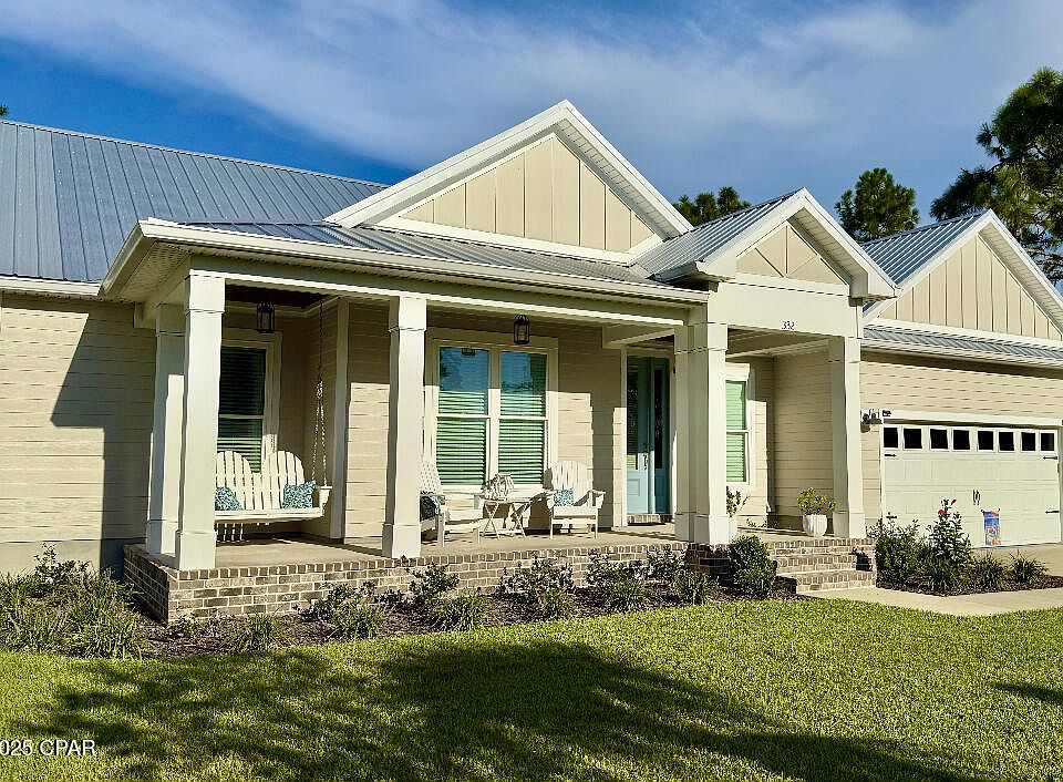 White graniteBeautiful porchesMetal roofSeparate laundry roomLarge windowsHardy-board sidingOversized kitchen island