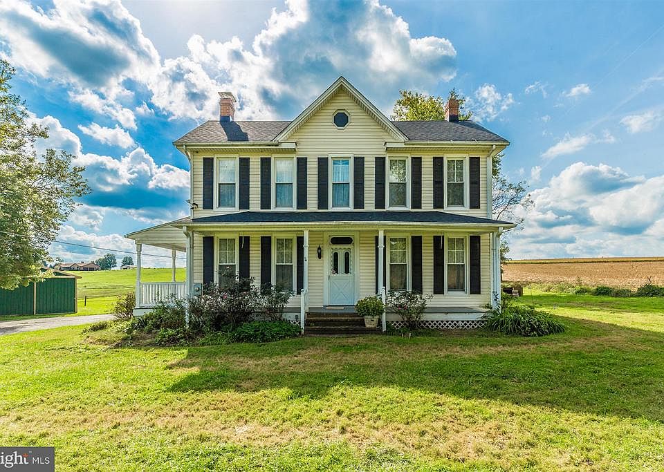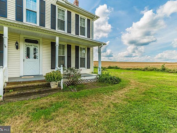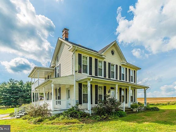 Charming 1800's farmhouse that is situated just outside the historic town of New Windsor. This farmette has approx 8.29 acres, a two stall stable, small stable yard, pond, detached two car garage. The home has 3 bedrooms, 1 and 1.5 baths. The first floor has heart pine floors, living room, ~and family room, with fireplaces. A large dining room, eat-in kitchen that has granite counter tops, custom oak cabinets, double oven, and a travertine tile backsplash. This home has a newer roof and siding, thermal windows and hot water baseboard heat. The master bath has a glass shower, a large jetted tub with a second level walkout porch. There are beautiful porches on the front and side of the home to enjoy the beautiful view of the pastures. Drive up to the home on a long paved driveway situated far from the front of the road with a gated entrance.