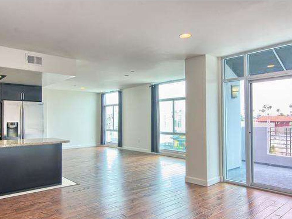 Spacious and bright contemporary top floor corner condo built in 2008. Large open plan living room, dining area and kitchen. 3 bedrooms, 2 bathrooms and 1,580 sqft. Hardwood floors, granite counter tops, stainless steel appliances and kitchen island with breakfast bar. Generously sized balcony with fantastic west and north facing views of the Hills and the Hollywood Sign. Large storage closet in entrance hall, internal washer and dryer. Additional external private storage space. Fitness and recreation rooms. Fantastic location close to local shops, restaurants and amenities. The most convenient place in Korea town. Large Walk-in Closet. with 2 tandem parking spots. Elevator in building. Guest parking available as well. No smoking or pets in the unit. Tenant pays for utilities.