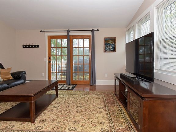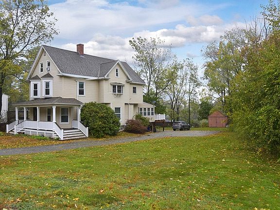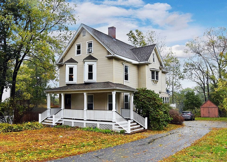 1900's Victorian has character and charm; converted 2003 to 2 condo units in the Bradford area of Haverhill. Front door entry is secure via lockbox code; entry hall has additional built-in drawers and wall sconce lighting. Enjoy 1st fl living in this 2 BR, garden style unit w/open concept floorplan. Front room is described as main BR features fireplace, wall inset mirror, 2 pocket doors, ceiling fan/light and closet (now used as music room). Kitchen is fully updated w/SS sink/appliances plus granite counters, pendant lighting and abundant cabinetry. Full bathroom w/tub/shower/granite countertop. Rear room featured as livingroom has ceiling fan/French doors leading to spacious deck. Window blinds found throughout. Interior access to basement for laundry. Top of the line on-demand water/heater. Country style living w/Bradford Ski Hill and farms nearby and close to urban amenities and public transit. Beautiful front porch and stairsteps w/rear deck lead to common outdoor area to enjoy!