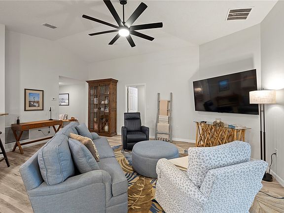 Partially furnished 2020 built 3/2/2 in desirable Sandcrest community. Large kitchen w/ granite tops and tiled back splash. New impact glass front door enclosed in a screened porch. Screened back patio and additional open patio for grilling and entertainment. Fenced back yard. Epoxied garage floor. Very well maintained home. A must see!
