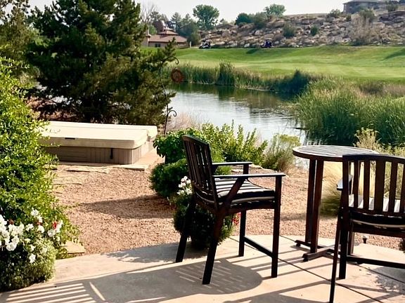This prestigious 3 bed 2 bath home is located on the Redlands Mesa Golf Course Ranked the #1 Colorado public course by Golf Digest! This location is unique from many as it is adjacent to hole #6 and alongside a beautiful, lush pond with plenty of wildlife to see. Secure community for an easy-going lock and leave lifestyle. Live it up on the bike and hiking trails, park or at the local tap house nearby. Less than 10 minutes to historic downtown GJ! As you enter the home you instantly feel the welcoming ambience. Telluride stone throughout the entry leads into the spacious living room and surrounds the gas/log fireplace. Entertaining comes easy with surround sound inside and out! Dining room is combined with a wet bar, mini fridge, and wine rack. The high-end features continue as you proceed to the open kitchen with granite countertops, 36-inch Wolf Range and an elegant custom range hood! Stay cozy and relax in the immaculate Master bedroom with the warm fireplace on or soak in the jetted jacuzzi tub in the bathroom. 3/4 bath and large spare rooms for your guest! Laundry room with sink and included washer and dryer. The stunning windows throughout the home display the pond/golf course views to the inviting back patio containing a bar and grill, fire pit and hot tub! Separately heated 3 car garage with plenty of storage, work bench and sink. Low Maintenance xeriscape outdoors and freshly sealed west facing driveway and east facing patio! Come see what this home has to offer for yourself and schedule your showing today!