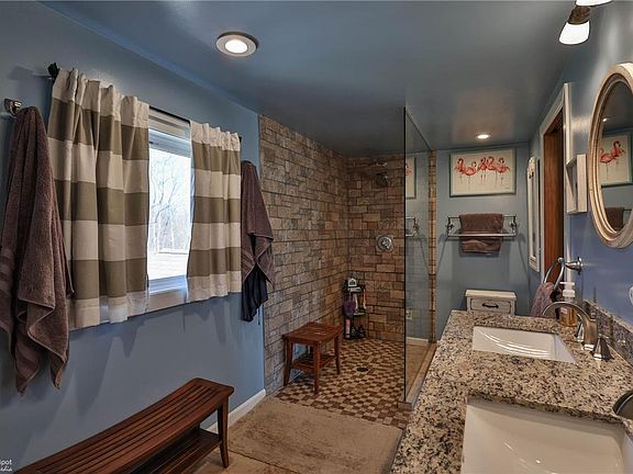 The impressive living space is created by an immaculate interior and features large entertainment spaces, a sunroom, a flow-through living/dining area, and a bonus room. Designed for gatherings and casual entertaining, this ultra-modern, eat-in kitchen includes stainless steel appliances, granite countertops, a tile backsplash, and a double-tiered kitchen island. Spread out in the grand main bedroom that boasts a luxury ensuite bathroom and a walk-in closet. The main bathroom was fully renovated and features a custom shower and his-and-hers sinks. Increasing the appeal of the home are hardwood floors in the living area. Enjoy the indoor/outdoor lifestyle in your enormous backyard which includes wood decking, a rolling green lawn, and a swing set. Simply ideal for year-round entertaining in your 2.15-acre yard. Are you looking for relaxed living at its finest? Conveniently set in a peaceful Washington Township neighborhood.