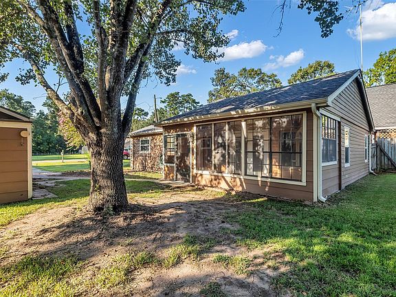 Super cute 2 bedroom home situated on large lot in Lake Chateau Woods - UNRESTRICTED NEIGHBORHOOD. This home has a NEW ROOF, newer refrigerator and washer and dryer - all included. Open concept kitchen is open to the large family room. Central air and heat - both work really well! Large enclosed sun room is perfect for a second entertaining area or work out room. Separate detached garage has space in the back for a hobby room or just extra storage. Lots of possibilities for this property! Super low tax rate. Zoned to exemplary Conroe ISD. Great LOCATION - five minutes to The Woodlands and four different hospitals! Very close to I-45, the hardy toll road and 99. Tons of great restaurants and stores close by. NEVER FLOODED.