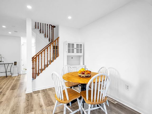 Beautiful freehold end-unit townhome located in a highly sought-after North Bowmanville neighbourhood, just steps from parks, schools, and local amenities. This bright and open main floor features a spacious living room, with new pot lights, an eat-in kitchen with ceramic floors, white cabinetry, and a cozy breakfast area with a walk-out to a fully fenced backyard showcasing a tumbled stone patio and armour stone landscaping. Upstairs offers a large primary bedroom with a walk-in closet and 4-piece semi-ensuite bath. The fully finished lower level adds valuable living space with a fourth bedroom, a recreation area, and a 3-piece bathroom featuring a large walk-in shower. Additional features include new stairs, flooring, pot lights, and freshly painted walls. This bright and cozy home is welcoming and ideal for a starter family or a residence with an in-law suite.