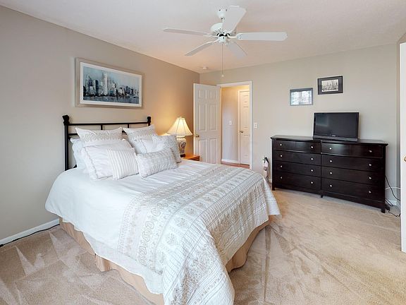 This beautiful condo is a MUST SEE! Soaring Ceiling on the 1st floor with Oak Hardwood flooring, a gas fireplace, Updated windows, a screened porch for relaxing with your coffee or a quiet dinner. The kitchen has Corian counters, an upgraded faucet, new appliances, upgraded electric in pantry, glass cabinet doors, and 42'' white cabinets. The 1st floor owners' suite is complete with jetted tub and dual vanity. The fully finished lower level includes full bath, recreation room, bedroom and extra storage space. The second floor offers a loft, bedroom with multiple closets and a full bath. Exterior of unit was completely refinished in 2016 - new Tyvek, new siding, and rebuilt chimney.