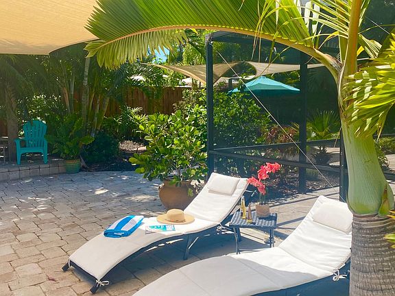 Tropical Paradise within easy walk to the beach and Village, for shopping, dining and live music. Located on the canal, with floating dock, this home offers a large screened in patio with salt water pool and hot tub, all surrounded by lush tropical foliage. The open floor plan is great for spending time with family and friends. A great place to relax after a day at the beach, or a peaceful evening watching the sunset.