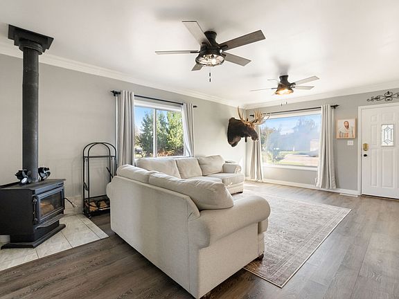 A rare find of space and value within the city! Priced under $350,000, this charming home features 3 spacious bedrooms and a full bath. Step inside and feel instantly at home in the large living room, perfect for cozying up by the wood-burning fireplace on a chilly evening. But the true gem awaits outside: an incredible, private .49-acre deep lot. The fully fenced backyard is a gardener's dream, complete with mature fruit trees, dedicated garden space, a chicken coop, and a fantastic high tunnel greenhouse offering endless possibilities for year-round growing. Don't miss this opportunity for exceptional value and a little slice of country life. Call for your private showing today! Buyers to verify all information.