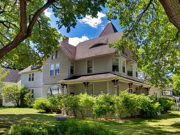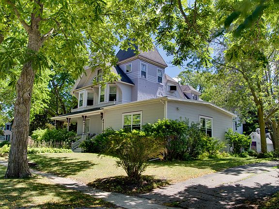 This painted lady w/all its original architectural charm from the turn of the century has cherry wood cabinets,granite countertops,inlaid cherry,oak & maple flrs.Huge foyer w/open staircase is most welcoming.Being completely refurbished makes this an extreme value w/approx 4000SF of spacious rms & high ceilings w/4bdrms & 2.5baths.Exterior deck w/pond,2car garage(old carriage house)w/complete loft