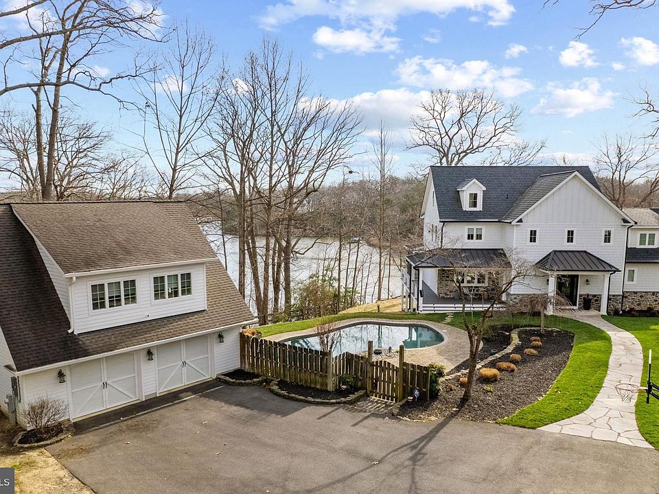 Nestled above the serene shores of Beards Creek, this exceptional, recently constructed luxury home stands as a masterpiece of contemporary waterfront living. It redefines opulence, offering an exquisite lifestyle that begins with a saltwater pool overlooking the water – the epitome of luxury. Meticulously designed, this custom home showcases rare amenities, including a 2-car detached garage with living space above, featuring a kitchenette, full bath, water view balcony and half bath just steps from the pool. Revel in the seamless blend of refined elegance and modern convenience, ensuring a hassle-free living experience with public water, public sewer and natural gas. The coveted waterfront trifecta! Upon entering the home, the open floor plan creates an inviting space for gatherings, whether intimate or grand. Unwind in the living room with the beautiful tiled gas fireplace, or savor captivating views while enjoying meals in the dining area or relax in the screened porch. The gourmet kitchen, adorned with state-of-the-art appliances and sleek quartzite countertops, effortlessly combines style and functionality. The main level provides a secluded bedroom retreat with phenomenal views, full bathroom and walk-in closet; perfect for one level living, guests, or in-laws. Your furry friends will appreciate the conveniently located mudroom with dog bath leading to the wrap around porch and pool deck. Head upstairs to discover three bedrooms and two bathrooms, including a primary bedroom suite with panoramic views, electric fireplace, spa-like bathroom and enviable custom closet. The additional 2 bedrooms are connected by a well-appointed shared bath. On the third level, a bonus room awaits, offering a haven for leisure and overlooking the creek and the pool. The lower level with sweeping views of Beards Creek is decked out with a custom bar with seating for 10, gym with rubber flooring plus a gas fireplace wall with an 85" television. Step outside to lounge around the saltwater pool or venture down to the water's edge with over 200 feet of waterfrontage, complete with a private pier with 10,000lb boat lift. This home represents waterfront luxury living at its finest. Welcome to a sanctuary where every detail reflects unparalleled craftsmanship, providing a lifestyle of tranquility and sophistication. Welcome Home!