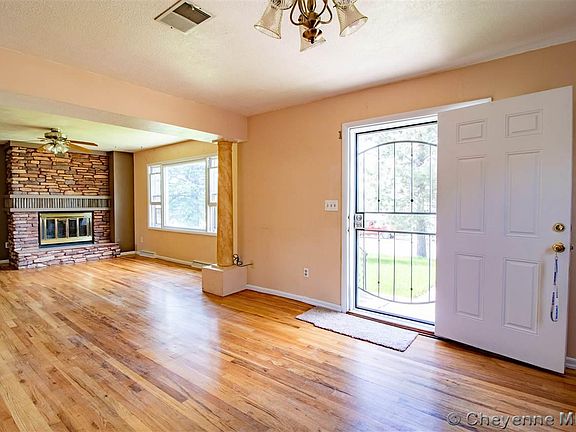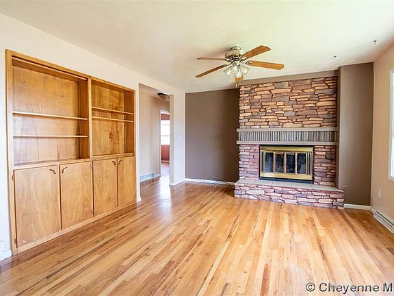 Spacious ranch style home located in a desirable neighborhood! This home features 5 bedrooms, 2 bathrooms, and an oversized 2 car attached garage. This home offers an open floor plan with fireplace and built in hutch, hardwood floors, AC, enclosed breezeway, 2 kitchens, 2 laundry hookups, sprinkler system with well irrigation, and a shed. Possible basement apartment with private entrance. Large fenced corner lot with mature landscaping and concrete patio.