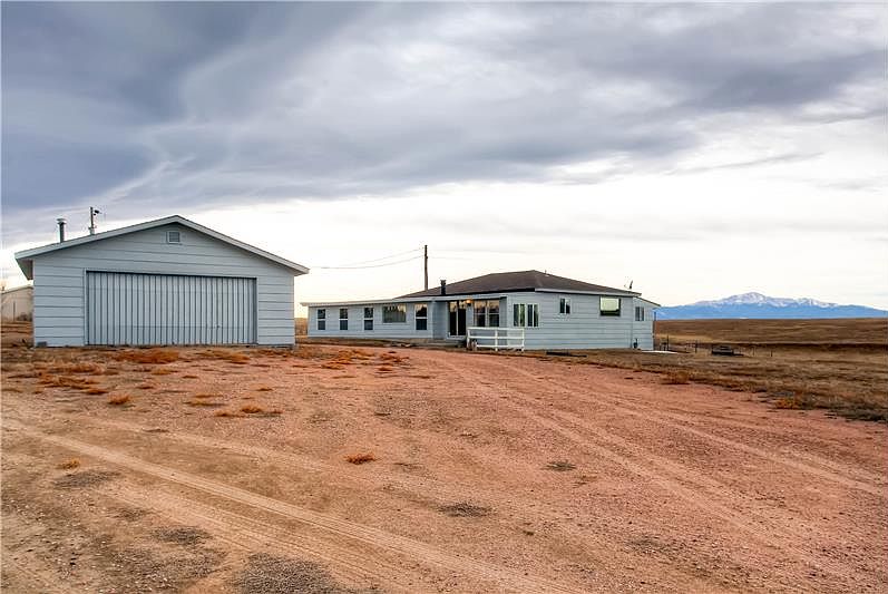 Peace & quiet surround this sweet home w/ sweeping, unobstructed Pikes Peak & Front Range views! 5 pristine fenced acres in prime location allow room for horses, RV parking, or just room to roam! This Rancher has >1700sf of main level living w/ 2 bedroom, 2 full baths + office/craft room, family room & living room * Nicely maintained & move in ready * Large, open kitchen * Wood Burning stove * Covered deck * Oversized 2 car garage w/ workshop * 2 storage/yard sheds * Easy access, just minutes to military bases & town!