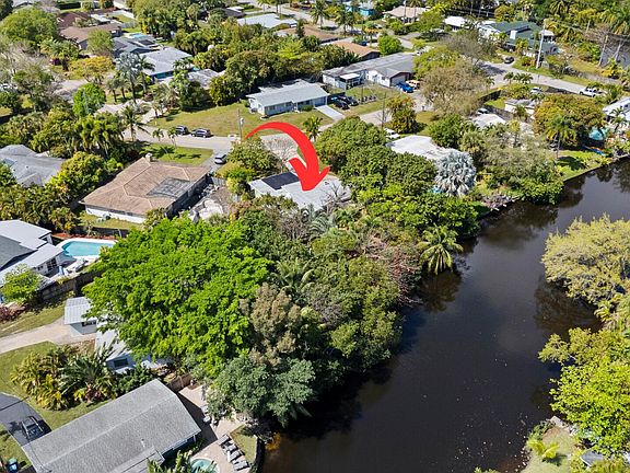 Opportunity KNOCKS! This hidden gem sits on a .72 acre small river lot which can accommodate kayaks & canoes. Not a navigable canal. 2022 Roof & 2022 Solar Panels. HVAC 2020, HWH 2021. This 3 bedroom, 2 bathroom mid-century home offers a 2 car carport with 2 storage rooms. PLUS there is an outbuilding w/electric. Multiple fruit trees including mango, avocado, lychee, jackfruit, & Brazilian cherry. Update to your taste and style! *Measurements deemed accurate, but not guaranteed* *Video recording devices on property*