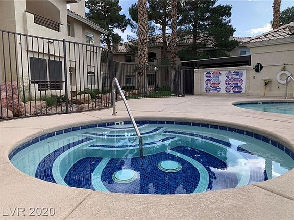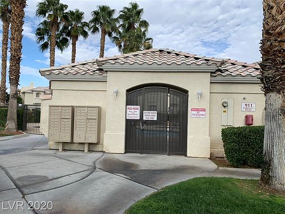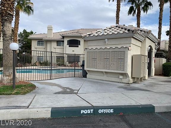 Charming condo located in a gated community in the Southwest, just east of Summerlin! Condo features first floor level, 963 square feet, 2 bedrooms, 2 bathrooms, a designated carport, living room, dining room, cozy kitchen, a covered patio with a storage room, all appliances included, the AC unit is 2 years old, and a stunning gated community complete with lush grounds and a sparkling pool and spa.