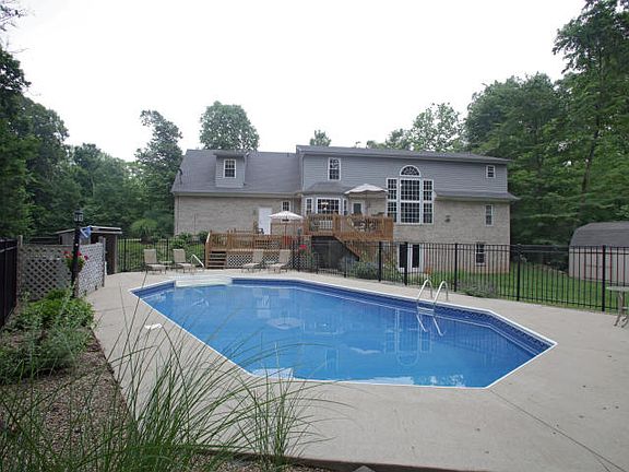 Living in the country has never been better! Nestled in the privacy of almost 5 acres this gorgeous home offers an open concept floor plan which includes 5 bedrooms, and 4 baths. The first floor master bedroom has two separate walk-in closets. The family room offers beautiful views of the wooded back yard through the two story palladium window. In the kitchen, you will find a breakfast bar, perfect for a quick snack or sit at your kitchen table and watch the wild life outside the multitude of windows. Upstairs offers another master suite, two additional bedrooms and bath. Going down to the lower walk out family room, you will find the perfect area for just hanging out. It also offers the same private views of the back yard, another light filled bedroom, an additional room, full bath and an area for all your storage needs. Outside is an oasis, complete with heated in- ground pool, deck and patio surrounded in privacy!