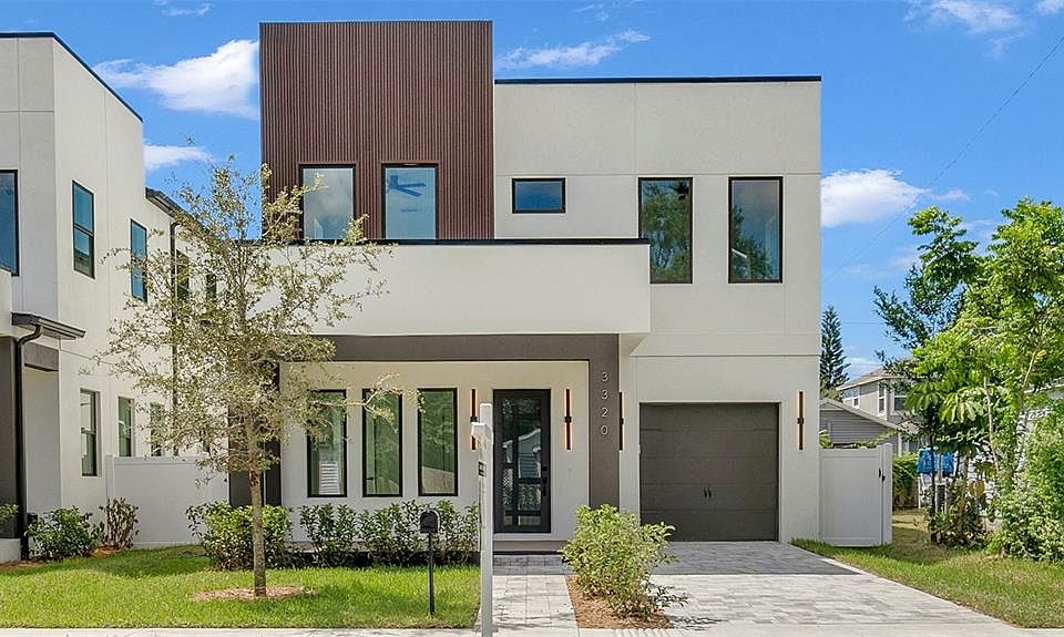 Experience contemporary LUXURY in this newly completed home designed with premium upgrades and peace of mind at every turn. From the moment you walk through the 8-ft impact entry door, soaring 10-ft ceilings, and high-polished tile floors create a dramatic and open feel. The chef’s kitchen is a true showpiece with waterfall quartz countertops, sleek high-gloss cabinetry, built-in microwave, and striking gold finishes that elevate every detail. A formal dining room, spacious family room, and stylish guest bath complete the first floor, while the epoxy-coated garage with an impact door provides both durability and function. Upstairs, wide-plank luxury vinyl flooring flows into each bright and spacious bedroom. The primary suite is a true retreat with an oversized walk-in closet, spa-inspired bath featuring a freestanding tub, floor-to-ceiling tiled shower, quartz dual vanities, LED mirrors, and matte blackfinishes. Two additional bedrooms boast large picture windows and walk-in closets, while the upstairs laundry offers tall high-gloss cabinets for added storage and convenience. Every detail of this home is thoughtfully crafted for modern living, style, and comfort. Best of all, it’s located in an X NON Flood Zone, less than 9 minutes from vibrant Downtown St. Petersburg and just 19 minutes from Tampa International Airport delivering luxury living in a prime, convenient location.