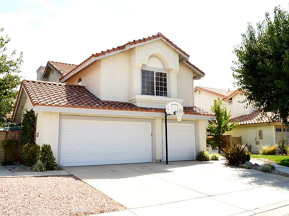 Located in the desirable Barratt Tract of West Palmdale this freshly remodeled, highly upgraded like-new, 5 bedroom, 3 bath home with sparkling pool AND a pass through 3-car garage! Numerous upgrades include: laminate wood flooring, crystal white marble counters, 8 chandeliers, curved staircase, first floor bedroom and bathroom, crystal white marble fireplace, newer stainless steel appliances, upgraded cabinets with built-in separate wine refrigerator, with recessed lighting and ceiling fans throughout. First level features a formal dining and living room with vaulted ceilings, chandeliers, large family room with fireplace, open eat-in kitchen with an extra-large crystal white marble center island and counters, upgraded cabinets and storage, separate downstairs bedroom with a full bathroom, separate laundry room. Access your private patio through the family rooms french glass doors to entertain family or friends in your expansive back yard featuring a glimmering pool, gated access, huge covered patio with sitting area. Upstairs, there is a spacious primary bedroom and bathroom with dual glass sinks and glass counter tops, a separate tiled shower and jetted soaking tub overlooking the back yard. There are 3 additional spacious bedrooms with large windows letting in lots of natural light sharing a full bathroom. You will have enough parking with a 3-car garage with pull-through access into the backyard with space for possible RV parking. Centrally located to public amenities.