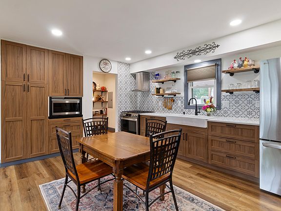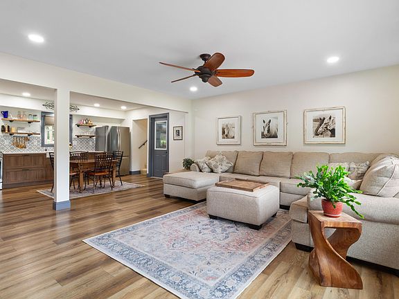 Welcome home! This updated 3 bedroom home has little to do except move in and even has related living area with separate entrance! From partial paver driveway to the cozy front porch to the foyer the home has thoughtful touches throughout. The open living room has plank style flooring, a dramatic full quartz wall with linear gas fireplace wide open to dining area and updated kitchen with gorgeous rich cabinets with plenty of full drawers, floating shelves, fully tiled wall, farmhouse sink and butler pantry with coffee bar by rear entrance. Above the garage is another bedroom, bathroom , and large living area. Perfect for related living. Outside there is a large deck area with smaller covered deck area in the landscaped fully privacy fenced yard.