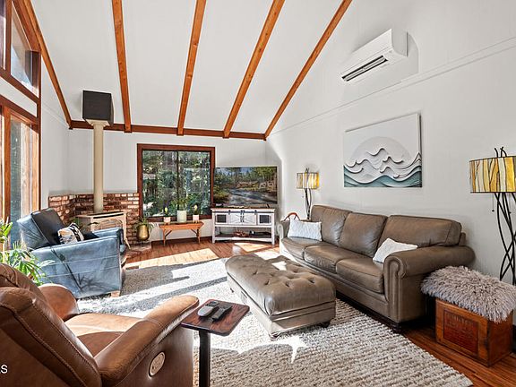 Step into a world of natural beauty with this thoughtfully designed retreat in the redwoods. The main house welcomes you with an open floor plan, vaulted ceilings and hand-carved wood details throughout. Large windows frame the majestic trees outside, bringing in light and a sense of connection to the forest beyond. The primary bath is dreamy with a sliding door out to the deck and a deep soaking tub where corner windows frame the scenery, making every bath feel like a spa retreat. The magic extends outdoors to a large deck and succulent gardens with dangling solar lights that twinkle at night. A barrel sauna invites relaxation and the adjacent outdoor shower is delightfully open to the redwood canopy above. The enchanting tiny home--brimming with beautiful woodworking details--has been a popular Hipcamp rental. It has a kitchen with everything one might need and a built-in redwood slab dining table. It even boasts its own soaking tub, mini-split, and outdoor shower--a guest favorite. There are two outdoor fire pit areas for spending the evenings talking and looking up at the stars. The 3+/- acres of private land unfold like a storybook with a trail winding through the redwoods, and a year-round creek singing softly. A circular paved driveway adds convenience, while thoughtful clearing and topping of some trees brings in sunlight. The two-car garage and attached workshop are perfect for projects and storage. This is more than a property--it's a lifestyle, enriched by the warm community of residents on Frog Pond Road. In Little River, you can't go anywhere without taking a stunning drive along Highway One with postcard views of the Pacific coastline. This home is only 10 minutes from the charm and amenities of Mendocino. Here, life slows down from the fast pace of cities, with nearby beaches, forest trails, and the peaceful vibe of a small town that feels like a well-kept secret. Take in the serenity, craftsmanship, and endless possibilities of this unique property--your next chapter awaits.